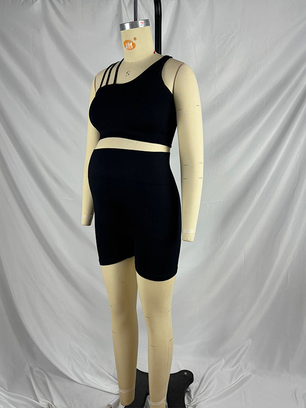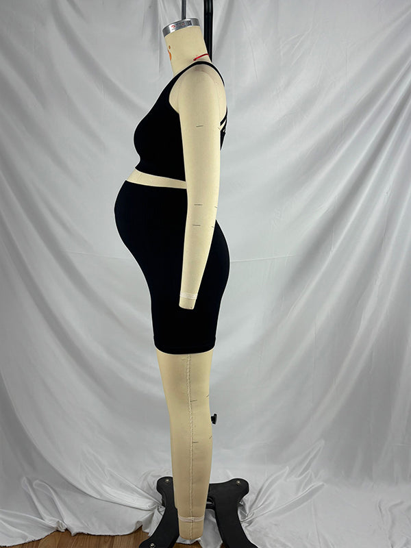 fotobeyou Over Belly Comfy Short Leggings Stretchy Maternity Two Piece Yoga Set