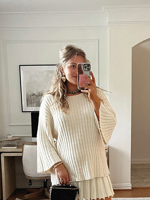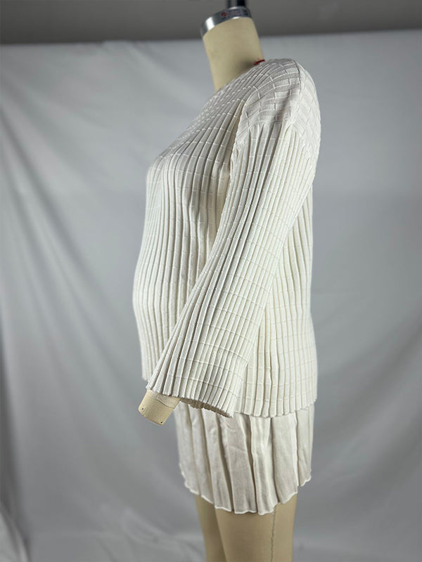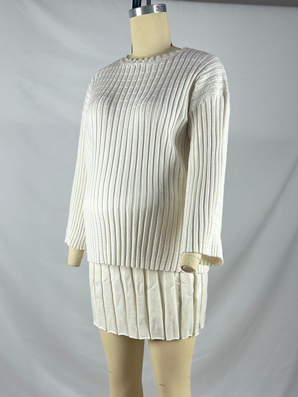 fotobeyou Oversized Flare Sleeve Sweater And Pleated Mini Skirt Knit Two Piece Set Elegant Daily Going Out Maternity Baby Shower Mini Dress