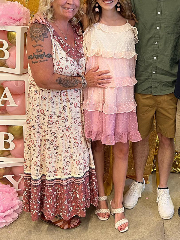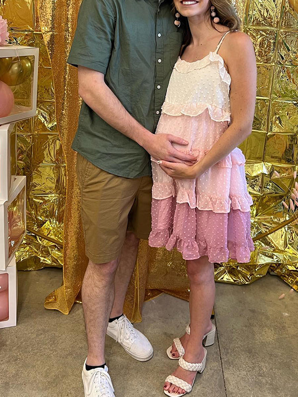 fotobeyou Pink Gradient Color Polka Dot Ruffle Falbala A-line Cami Sweet Going Out Daily Maternity Photoshoot Baby Shower Mini Dress