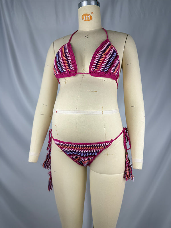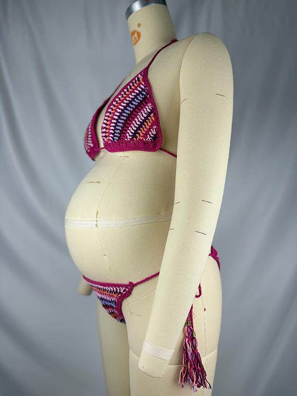 fotobeyou Halter Neck Backless lace-up Tassel Knitted Bikini Elegant Beach Maternity Swimwear