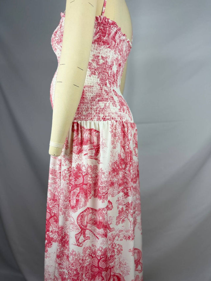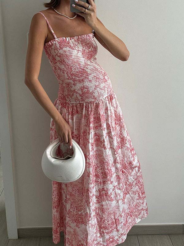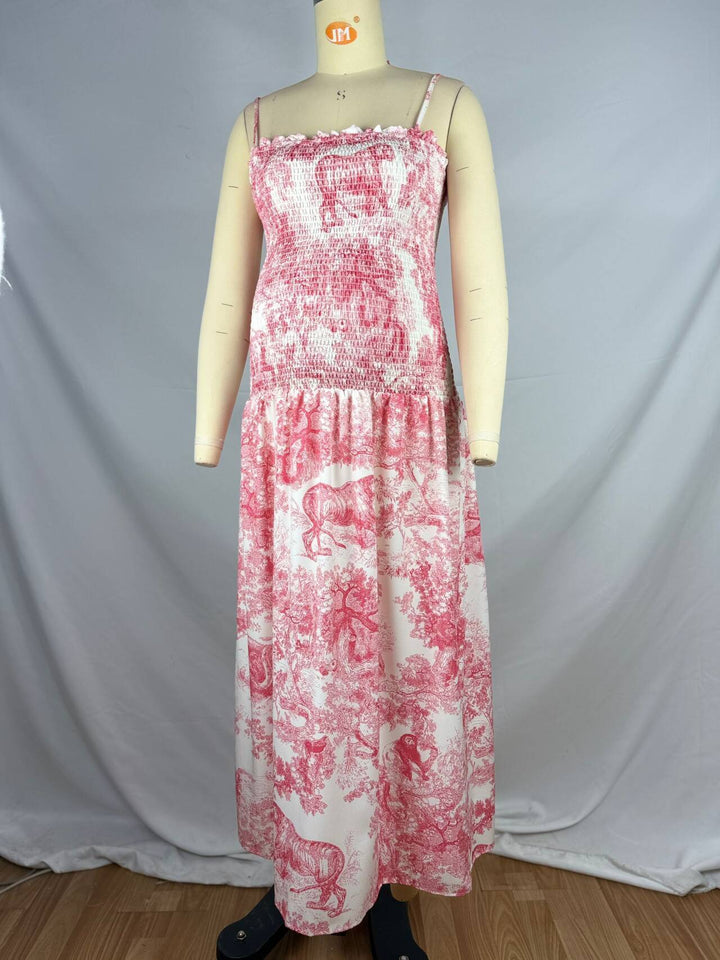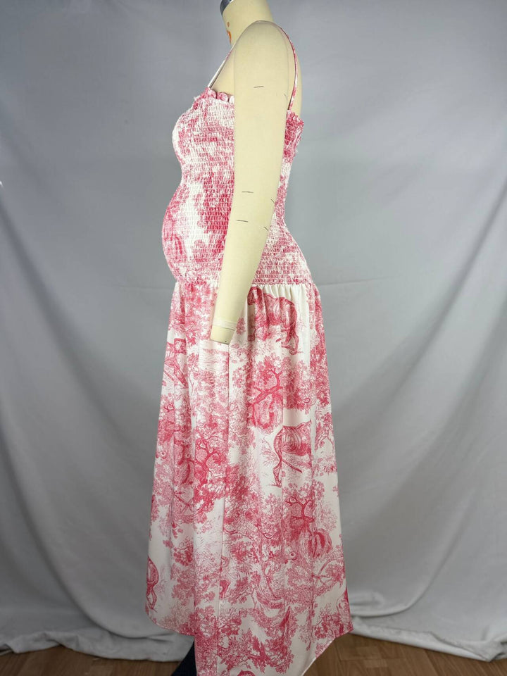 fotobeyou Pink Printed High Waist Tube Top Smocked Floral Maternity Maxi Dress