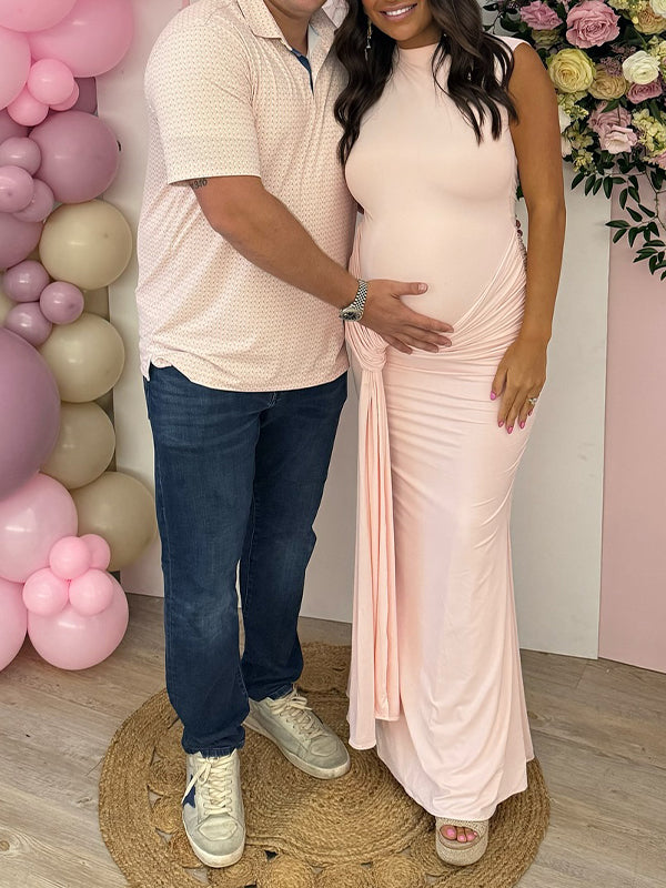 Fotobeyou Pink Ruched Draped Backless Baby Girl Shower Maternity Maxi Dress