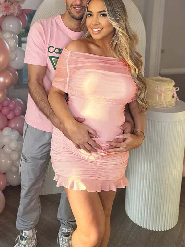 fotobeyou Pink Ruffle off-shoulder Bandeau Bodycon Elegant Maternity Baby Shower Mini Dress