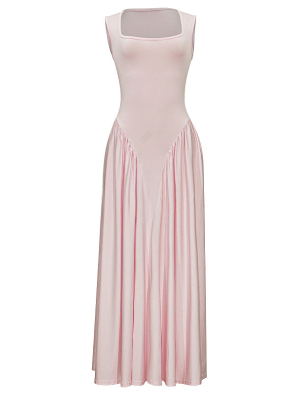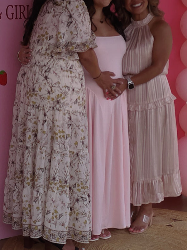 fotobeyou Pink Tank Drop Waist Big Swing Elegant Maternity Maxi Dress