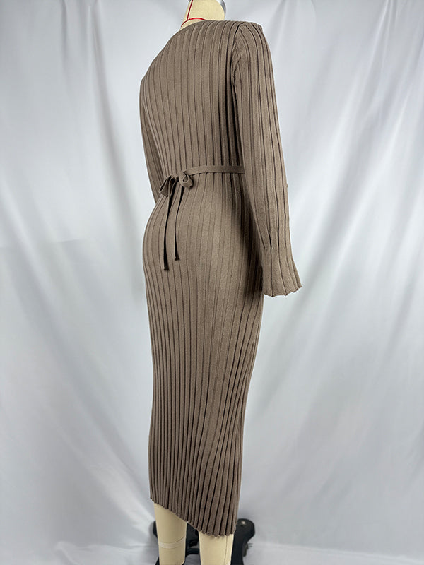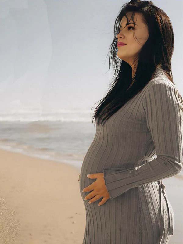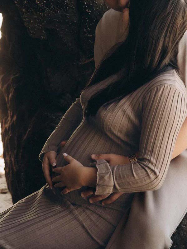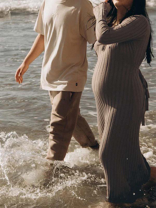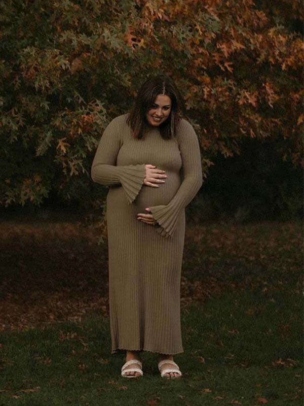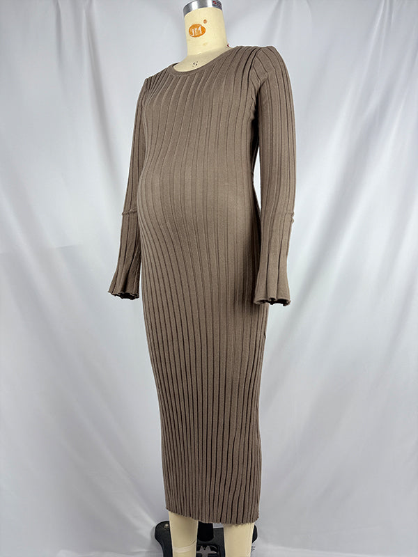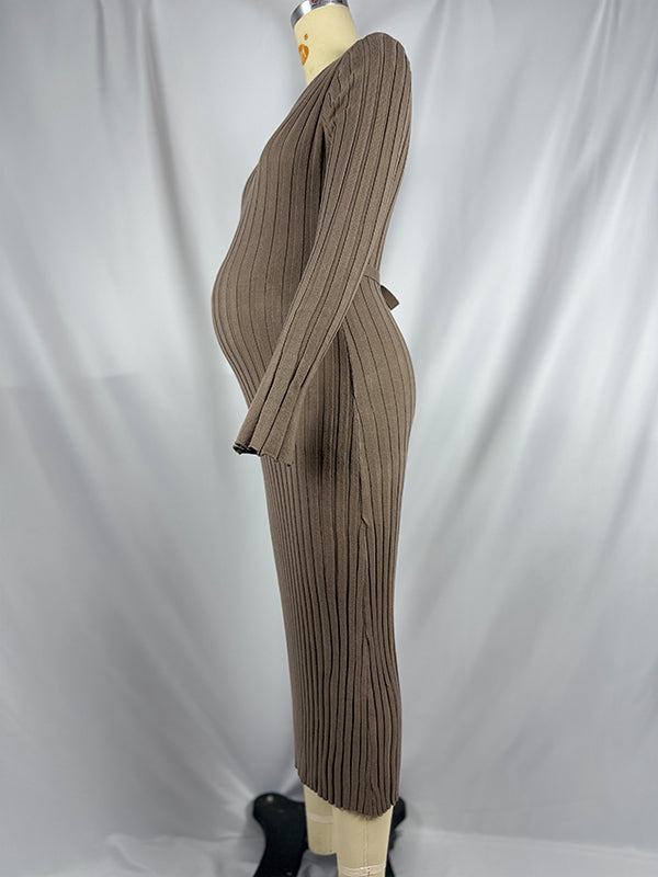 fotobeyou Pit Strip Back Belted Round Neck Flare Sleeve Bodycon Photoshoot Baby Shower Maternity Maxi Sweater Dress