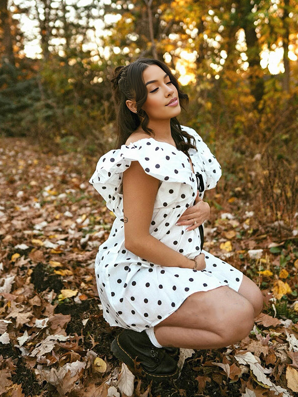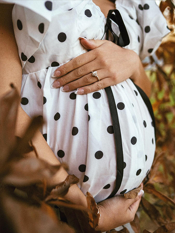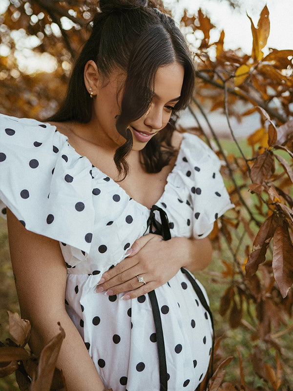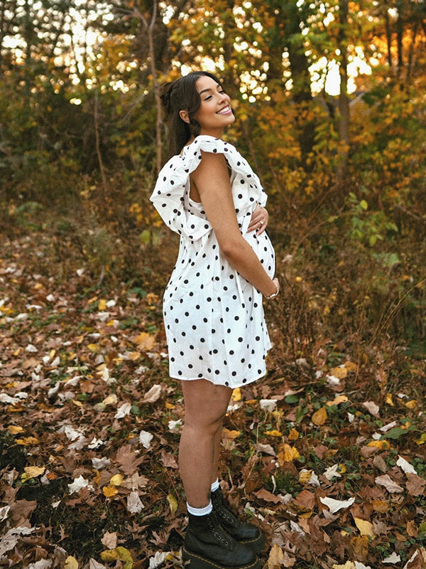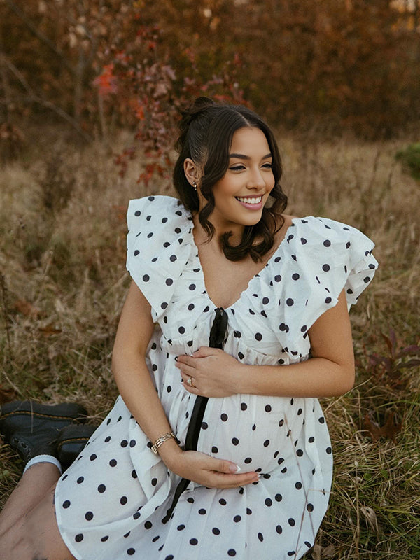 fotobeyou Polka Dot Bow A-line Cute Maternity Photoshoot Mini Dress