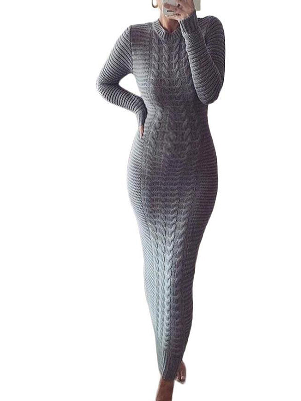 Fotobeyou Purple Round Neck Crochet Maternity Baby Shower Sweater Maxi Dress
