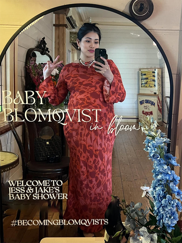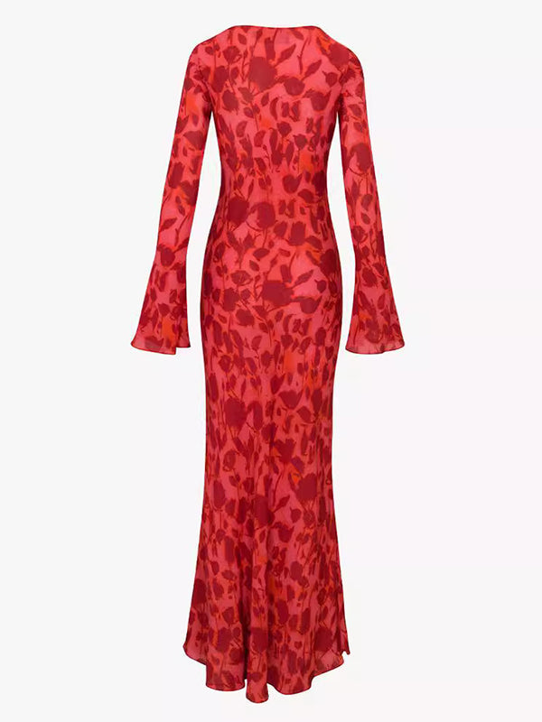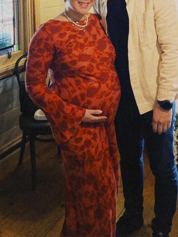 fotobeyou Red Leopard Flare Sleeve Mermaid Bodycon Cute Elegant Photoshoot Baby Shower Maternity Maxi Dress