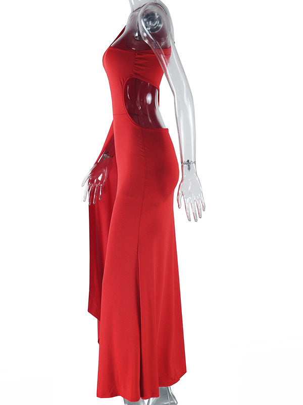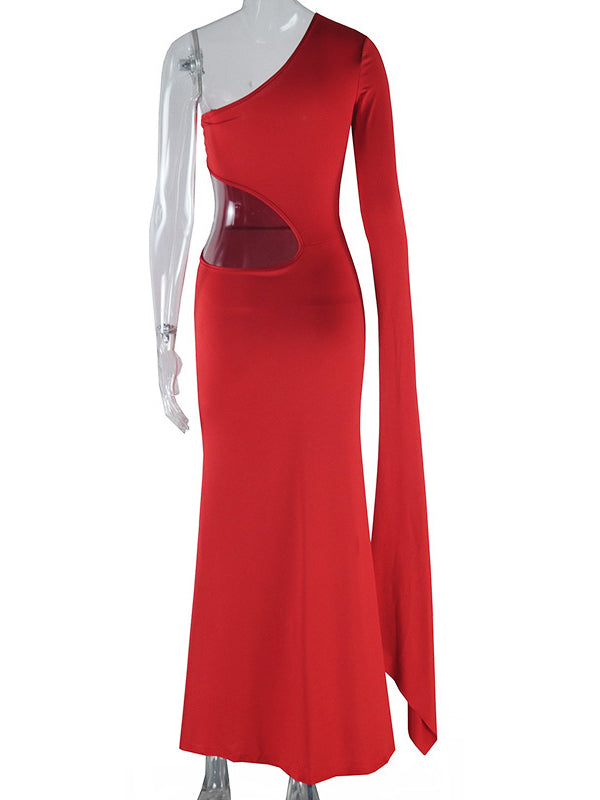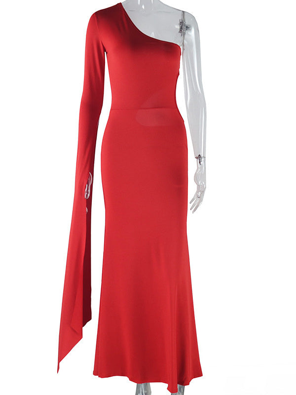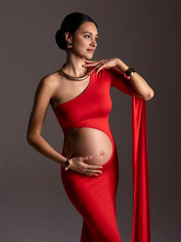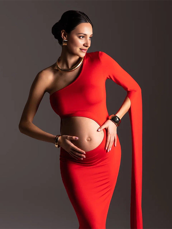 fotobeyou Red One Slit Sleeve Cut Out Bodycon Elegant Photoshoot Maternity Maxi Dress