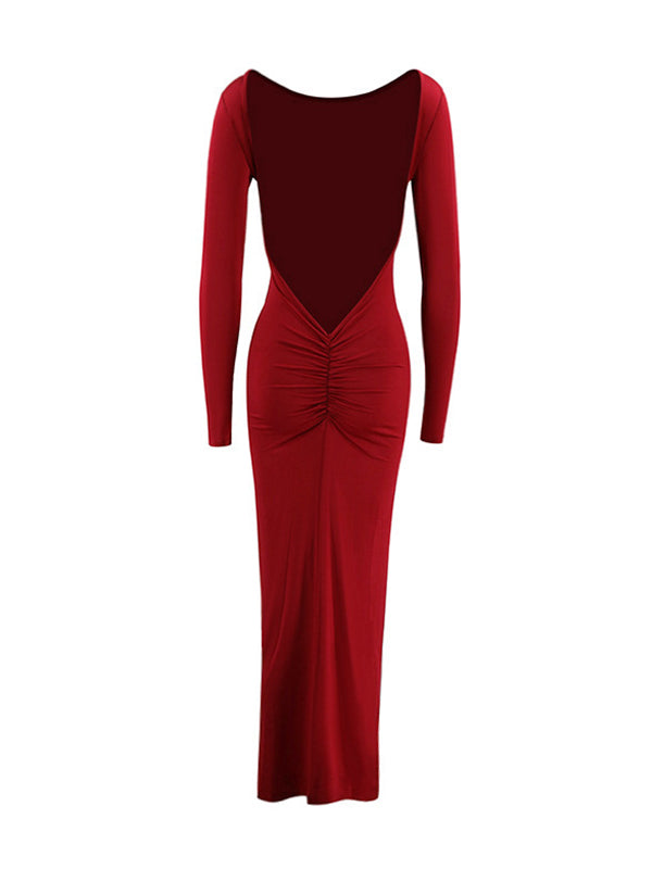 fotobeyou Red Reversible Ruched Backless Bodycon Elegant Evening Gown Maternity Photoshoot Maxi Dress