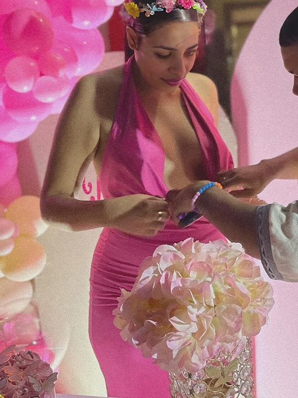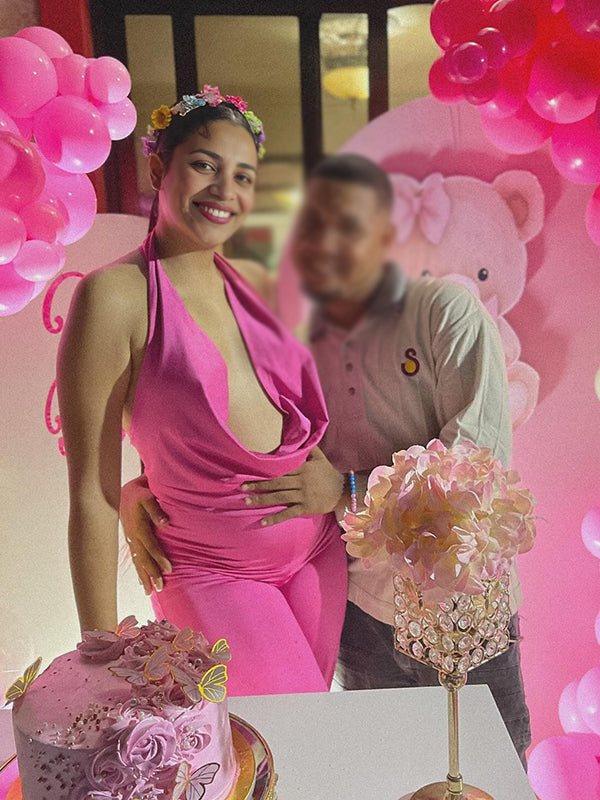 fotobeyou Rose Carmine Deep V Halter Neck Open Back Banquet Ceremony Maternity Photoshoot Jumpsuit