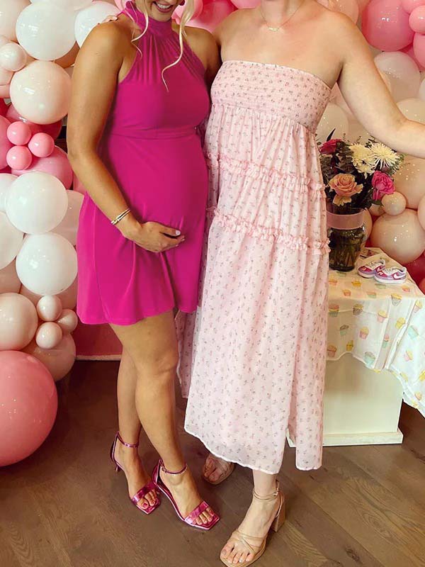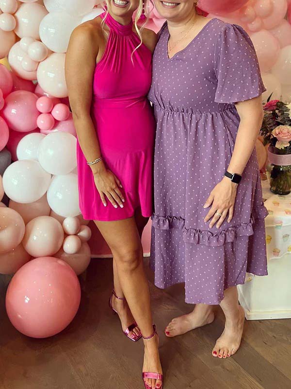 fotobeyou Rose Carmine Open Back Halter Neck Buttons Ceremony Banquet Maternity Photoshoot Mini Dress