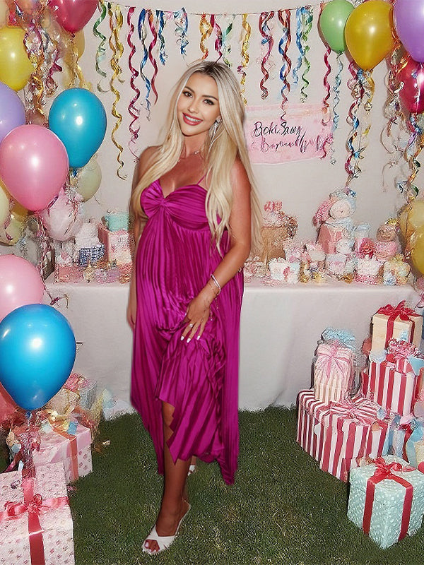 Fotobeyou Rose Carmine Pleated Irregular Baby Shower Maternity Maxi Dress