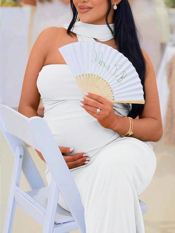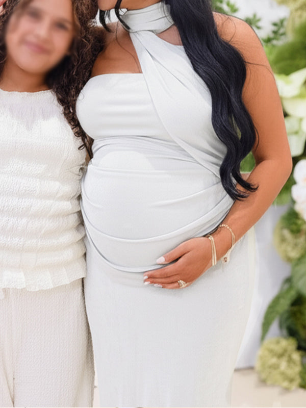 fotobeyou Ruched One Shoulder Draped Back Slit Elegant Maternity Maxi Dress