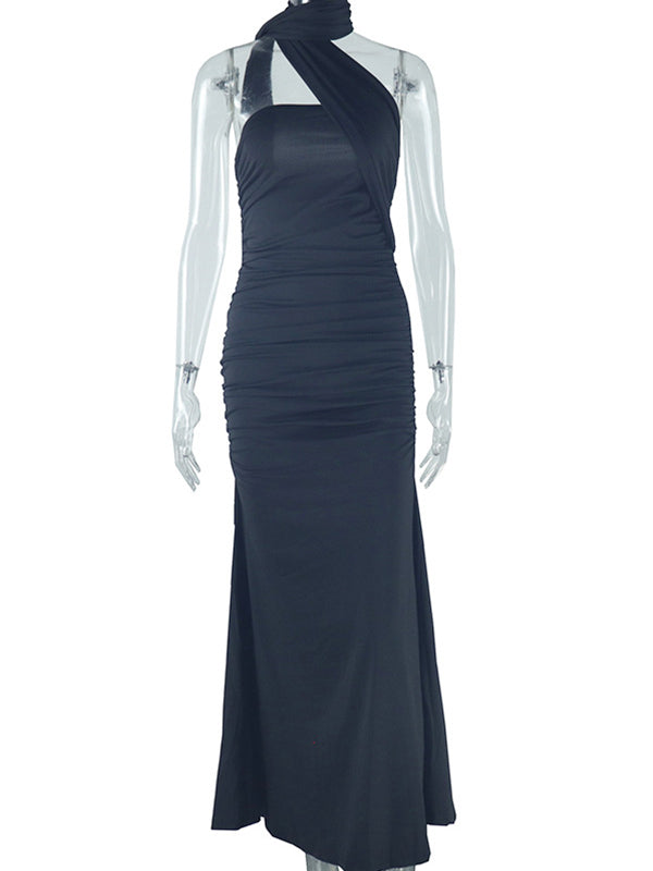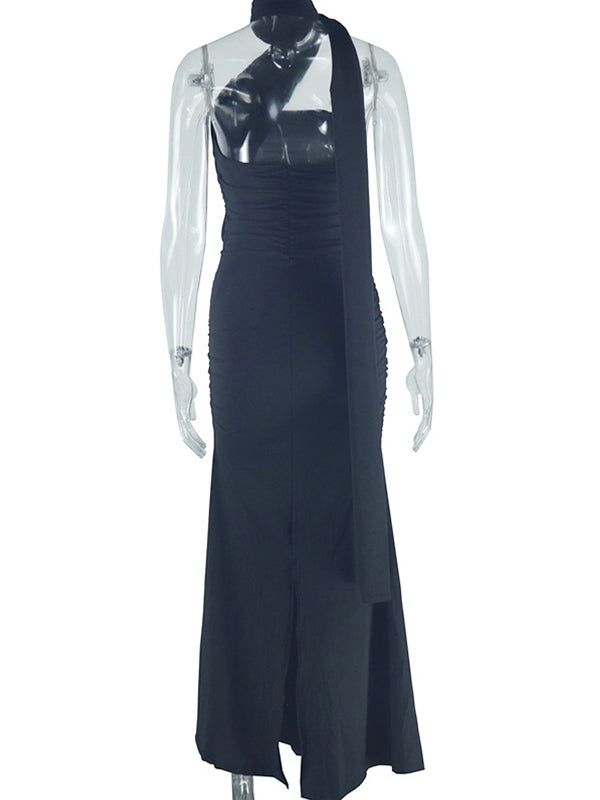 Decoration: Ruched, draped, back slit, scarf, bandeau, strapless, bodycon