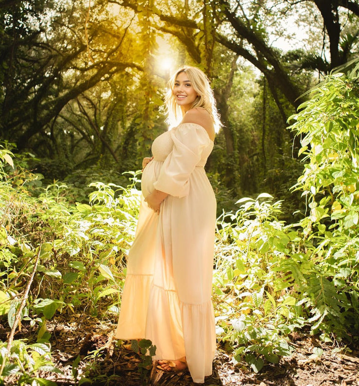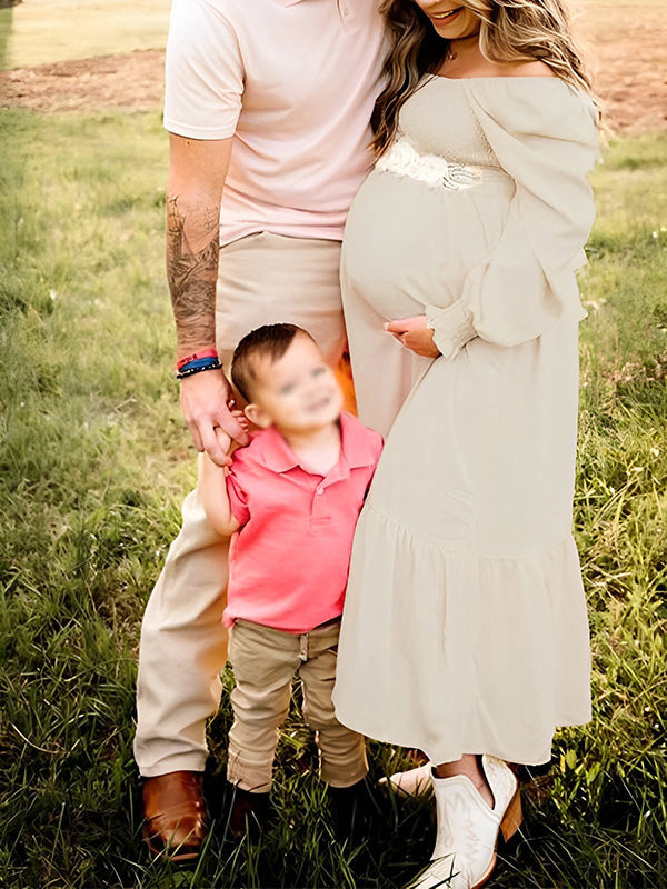 fotobeyou Ruffle High Waist Falbala Boho Flowy Long Sleeve Plus Size Baby Shower Maternity Photoshoot Midi Dress