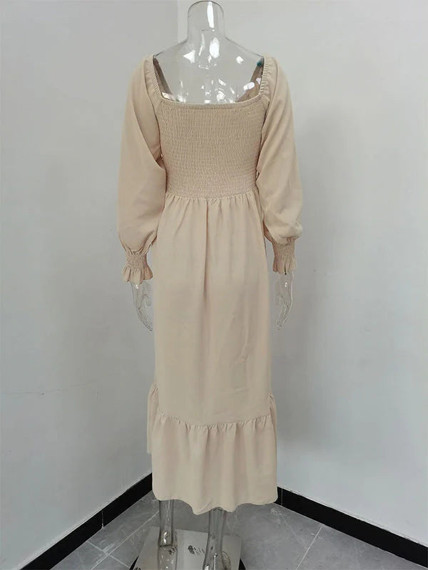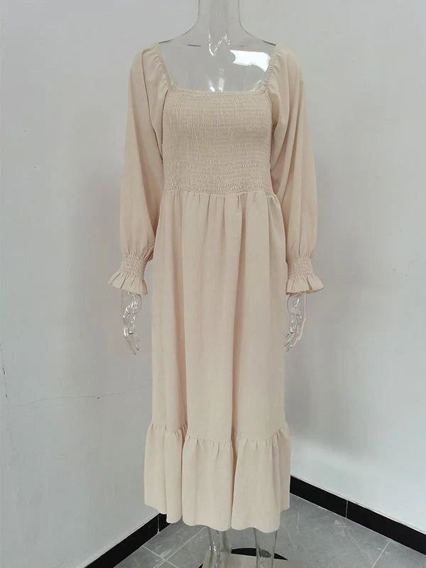 Design£ºThis flowy midi dress makes you more stylish, the elastic-smocked waist dress shows the body curves.This long sleeve a line swing maxi dress is very versatile, whether pair with high heels or jackets, It's your perfect companion.