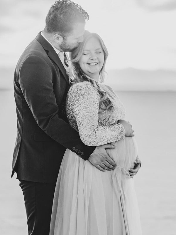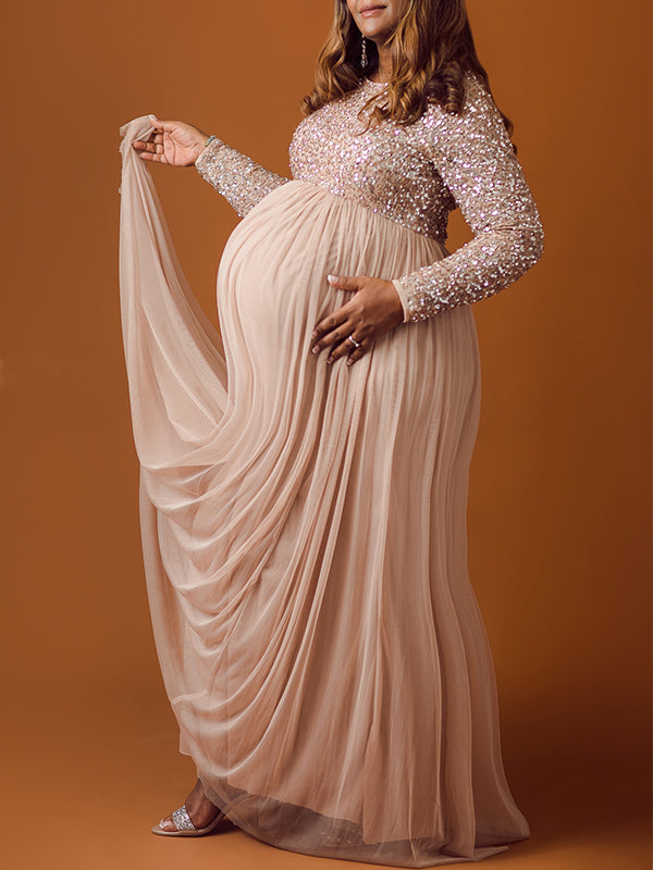 fotobeyou Sequin Tulle Splicing Long Sleeve Party Gown Photoshoot Maternity Baby Shower Maxi Dress