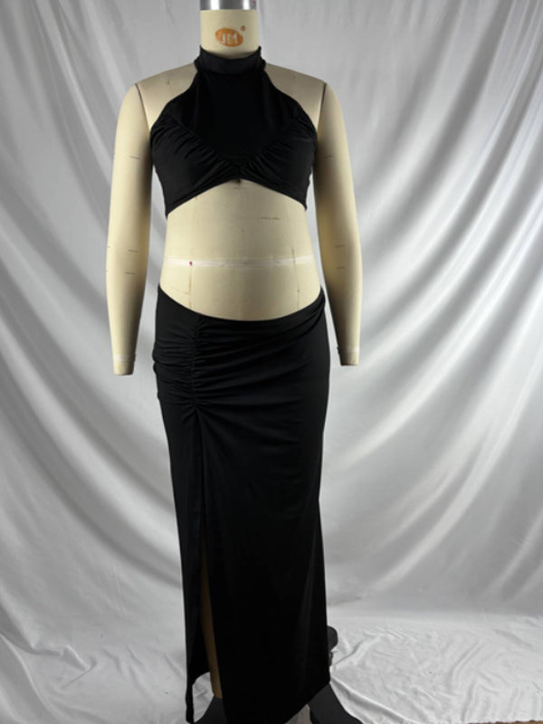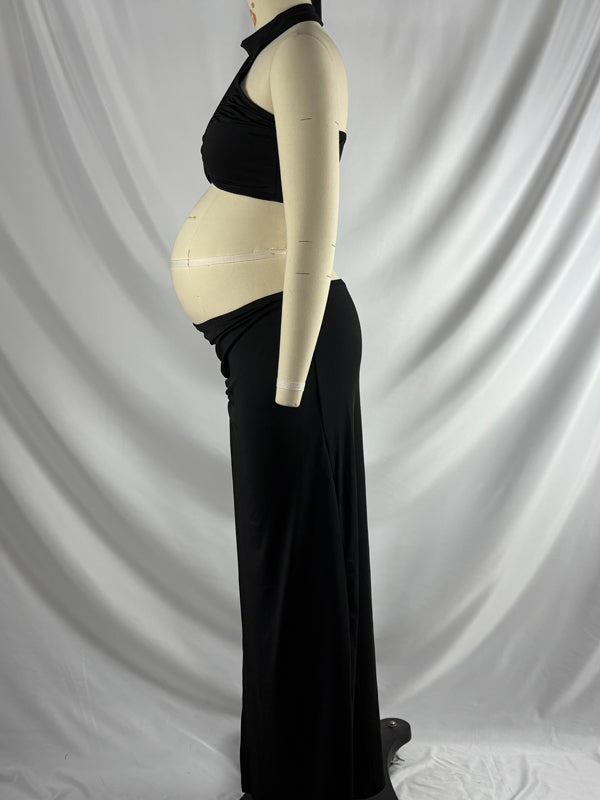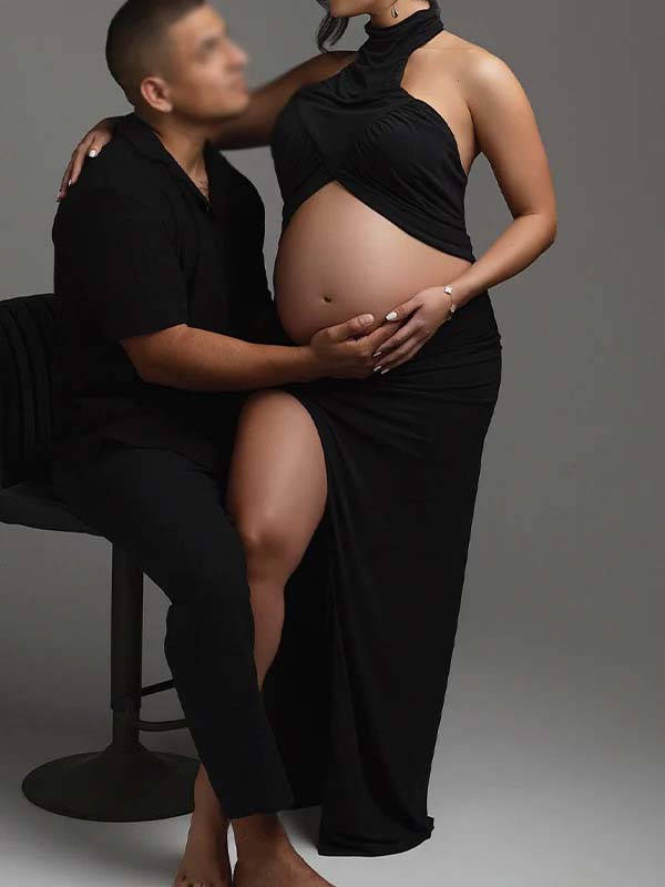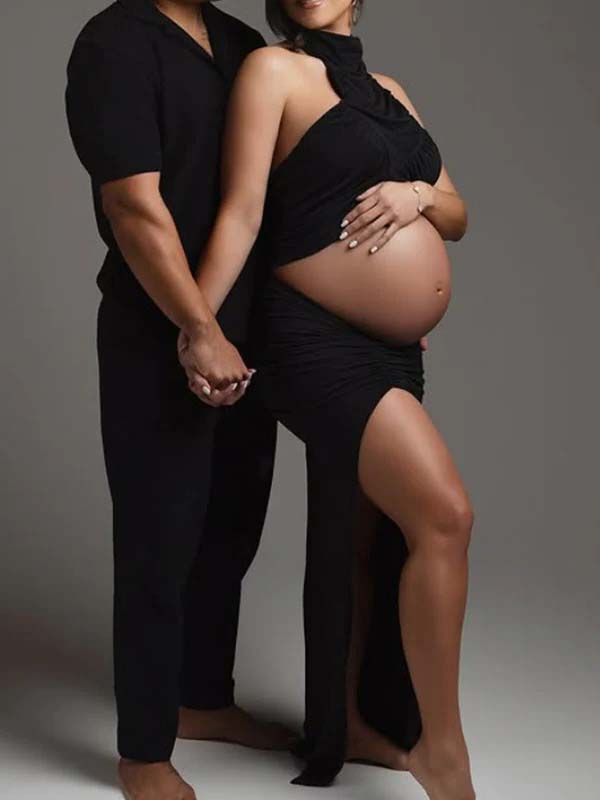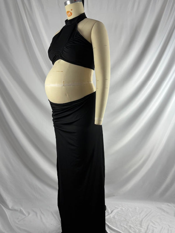 fotobeyou Side Slit Halter Neck Two Piece Maternity Photoshoot Maxi Dress