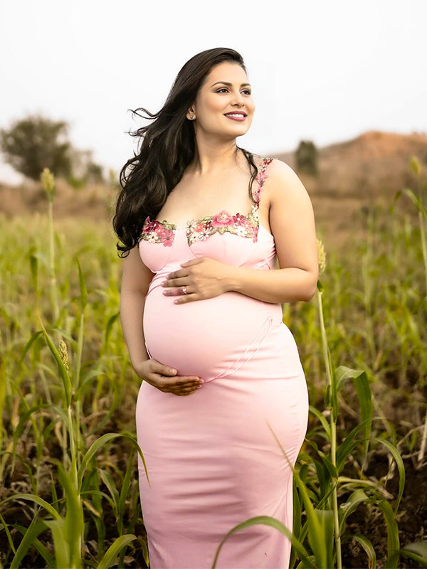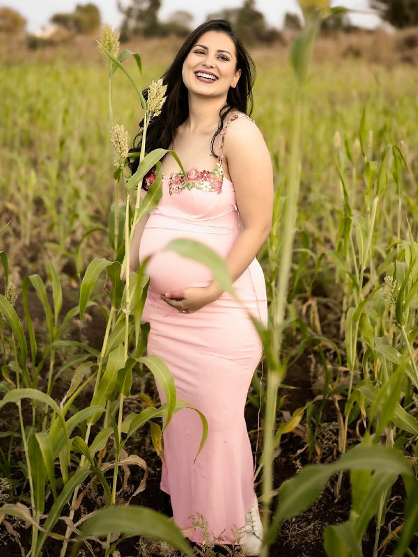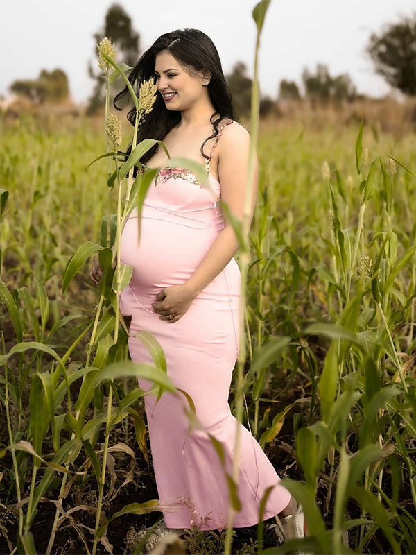 fotobeyou Solid Color Appliques Spaghetti Strap Drawstring Bodycon Mermaid Bandage Party Dress Photoshoot Maternity Maxi Dress