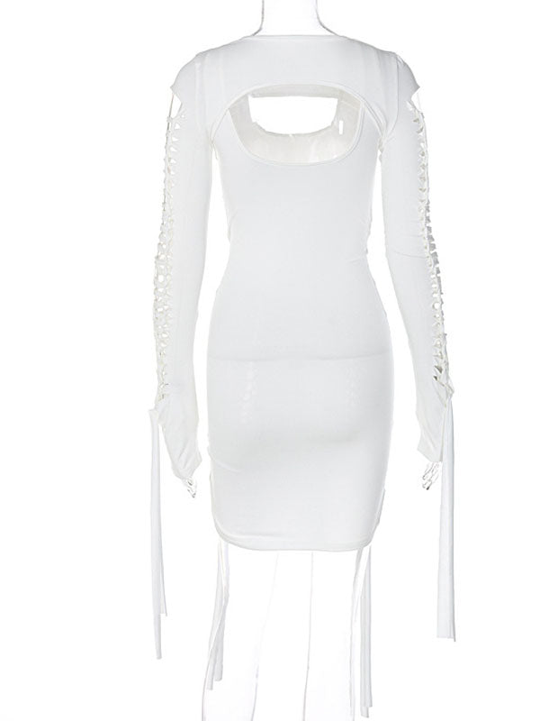fotobeyou Solid Color Cut Out Drawstring Backless Cape Fashion Two Pieces Going Out Maternity Baby Shower Mini Dress