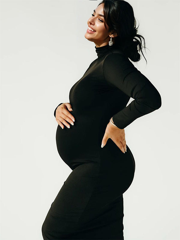 fotobeyou Solid Color High Neck Bodycon Mermaid Photoshoot Maternity Maxi Dress