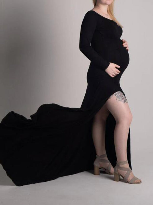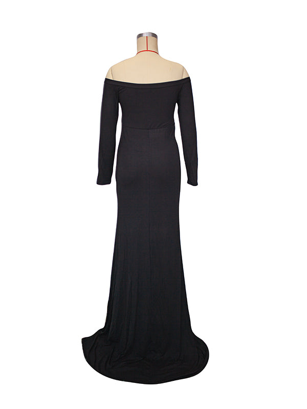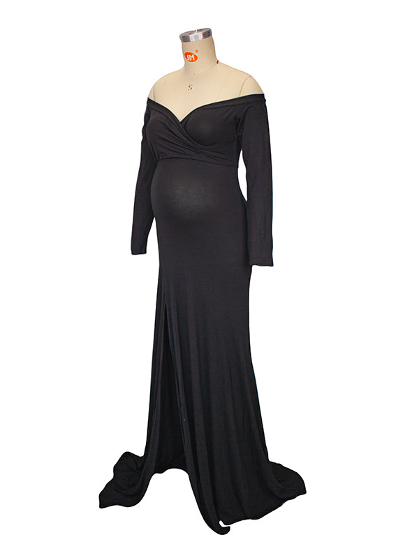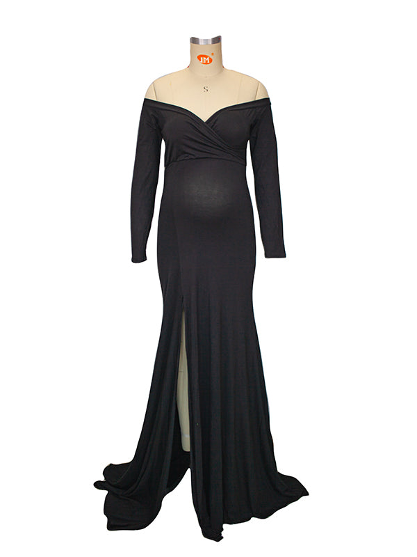 fotobeyou Side Split Mermaid Off Shoulder Bodycon Photoshoot Maternity Maxi Dress