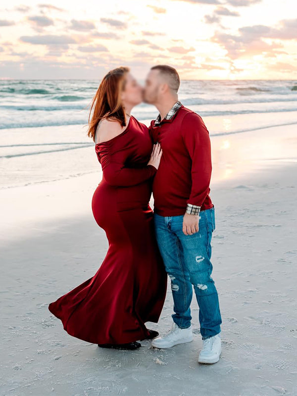fotobeyou Solid Color One Shoulder Ruched Backless Bodycon Mermaid Evening Cocktail Party Gown Babyshower Maternity Maxi Dress