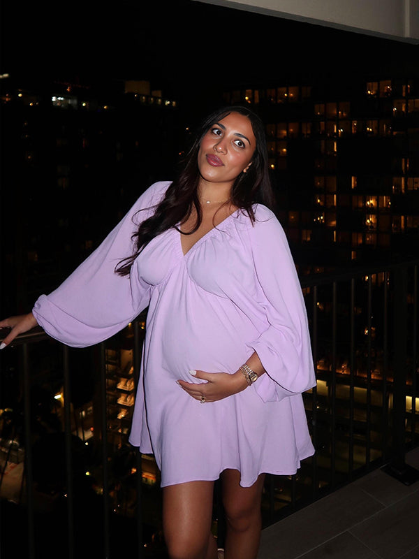 fotobeyou Solid Color Ruffle Hem A-line Lantern Sleeve Casual Going Out Elegant Maternity Photoshoot Mini Dress