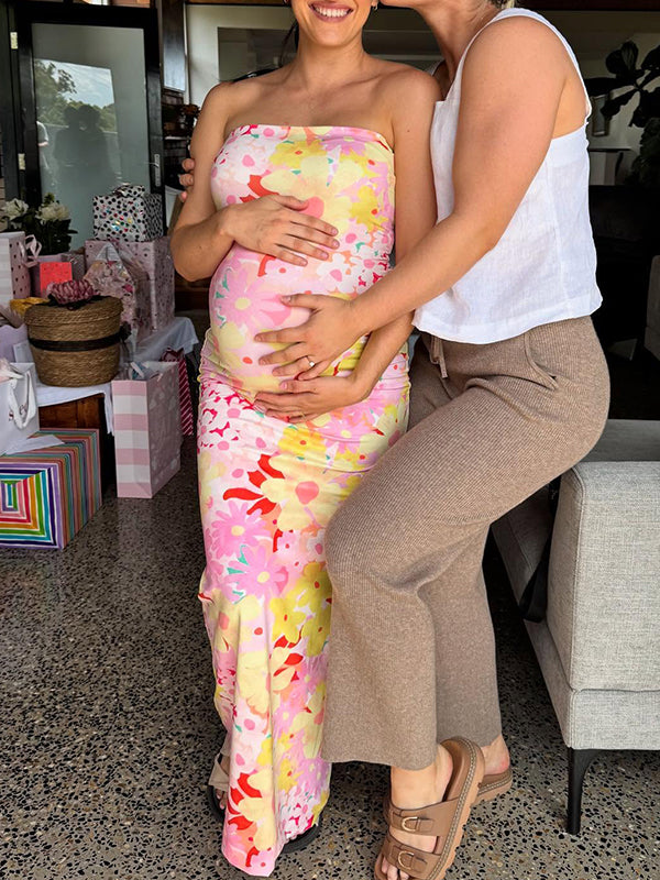 fotobeyou Stamp Duty Bodycon Vacation Beach Baby Shower Maternity Photoshoot Maxi Dress