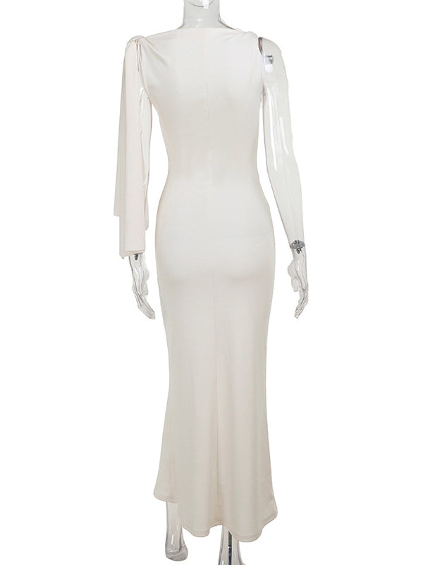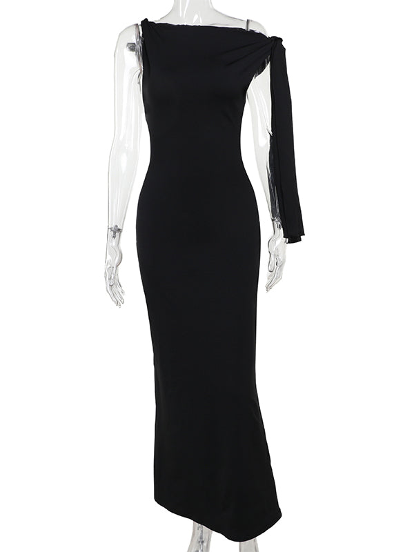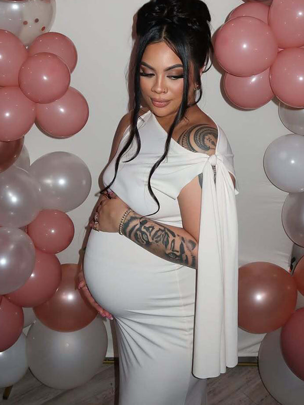 fotobeyou Strap Ties One Shoulder Mermaid Bodycon Elegant Photoshoot Baby Shower Maternity Maxi Dress