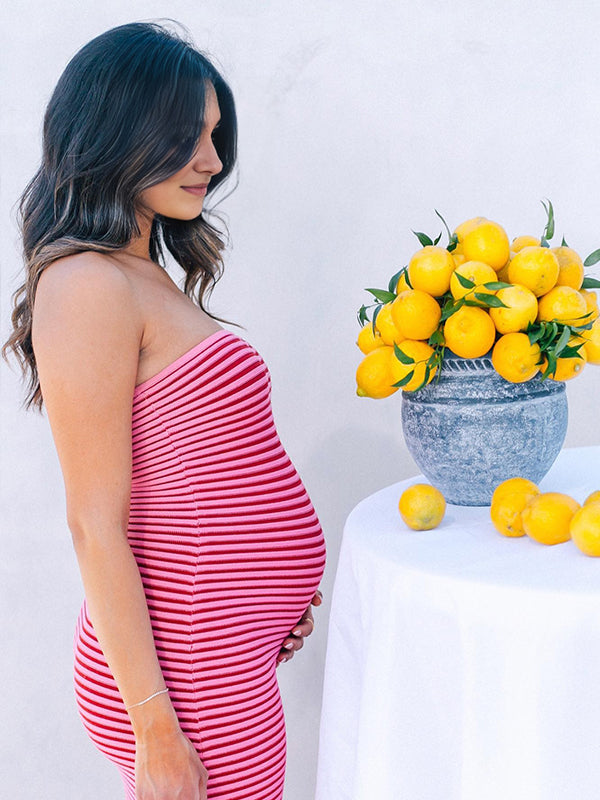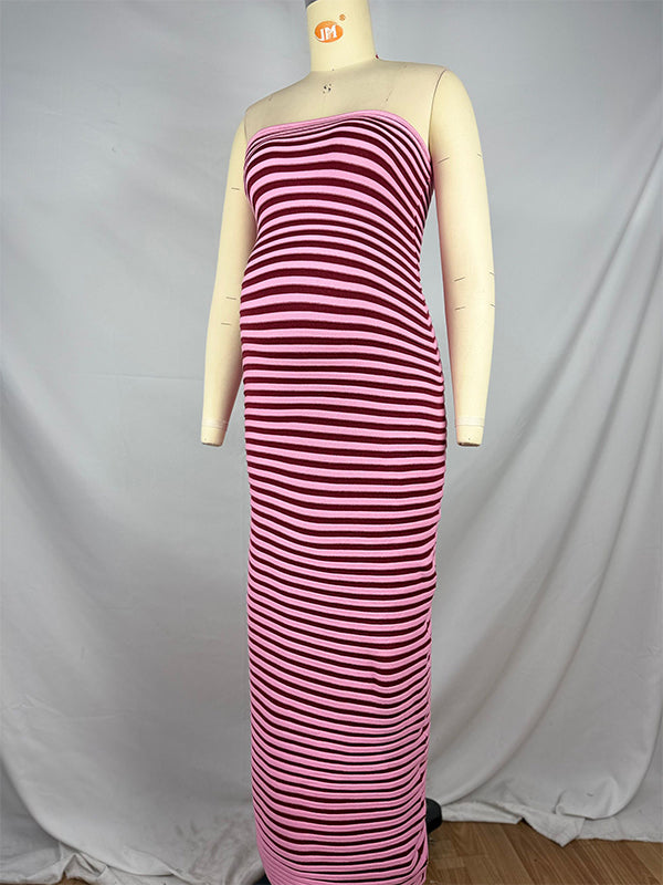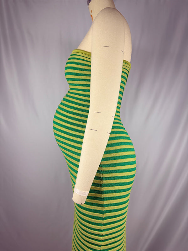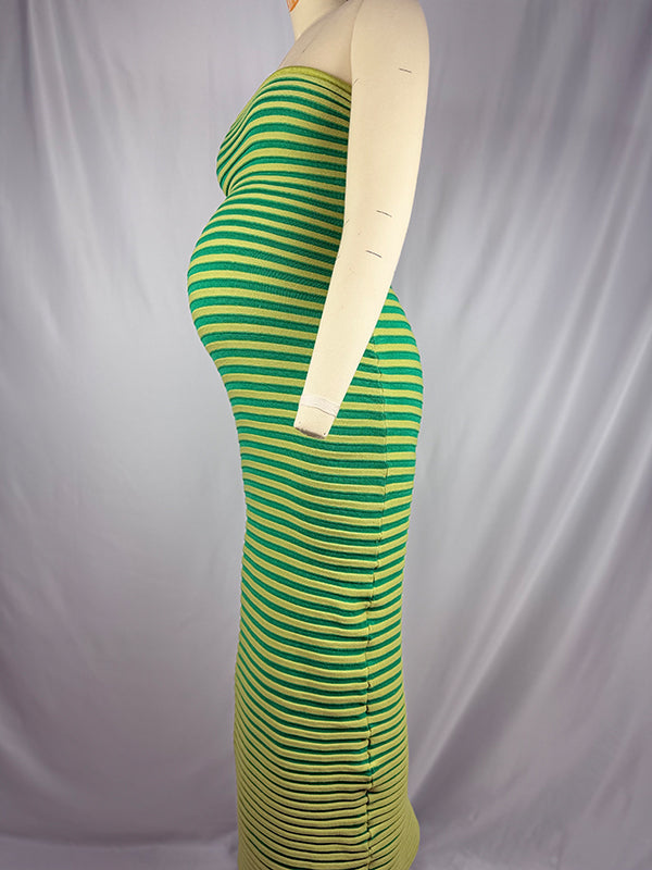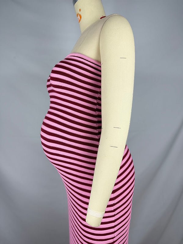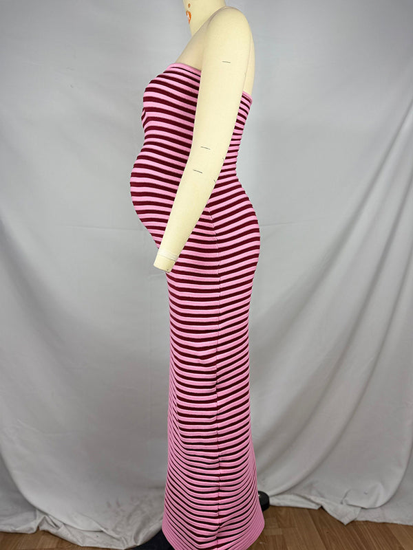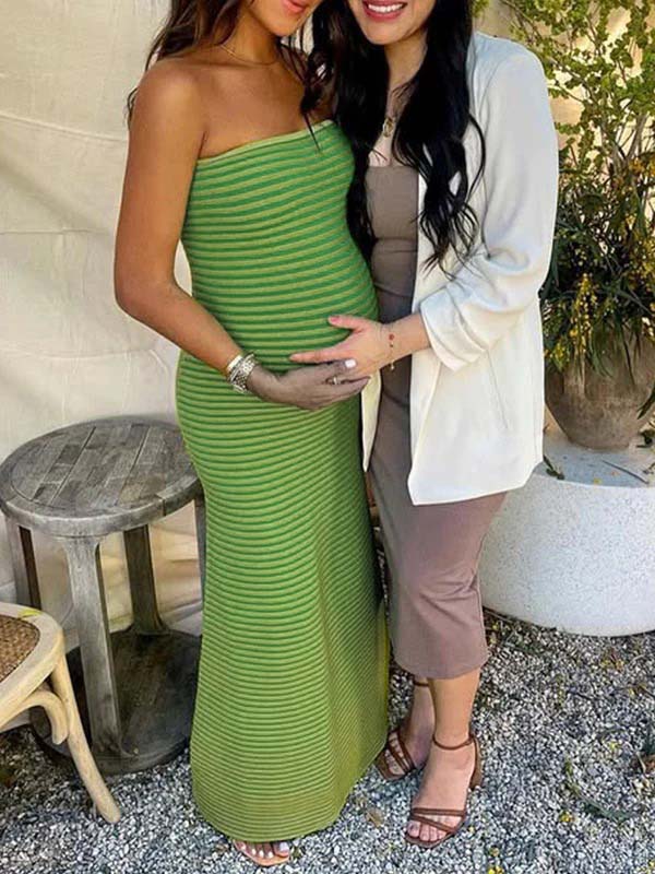 fotobeyou Striped Knitted Bandeau Strapless Bodycon Elegant Maternity Baby Shower Maxi Dress