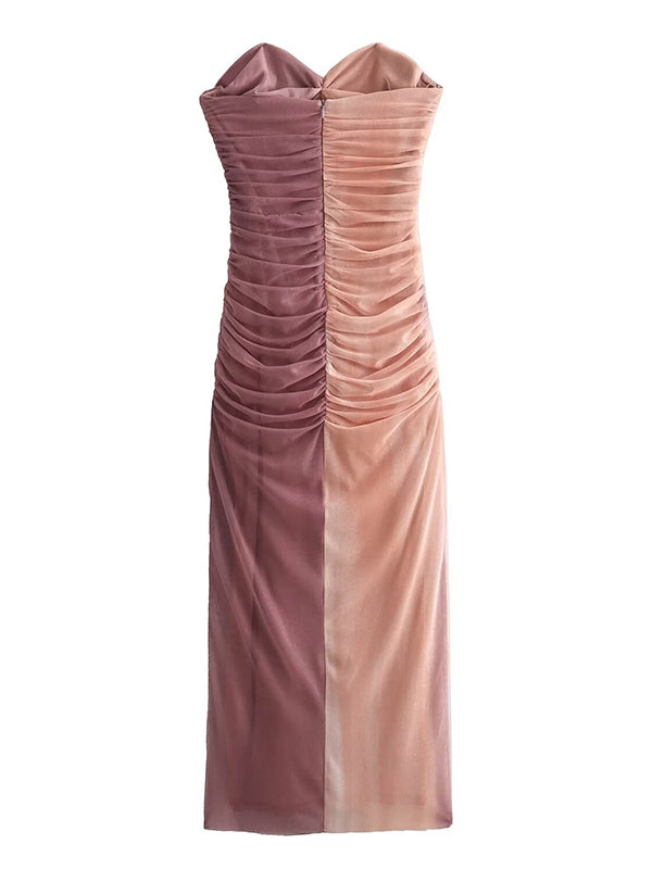 fotobeyou Tie Dye Mesh Ruched Bandeau Strapless Bodycon Chic Gender Reveal Party Maternity Photoshoot Baby Shower Maxi Dress