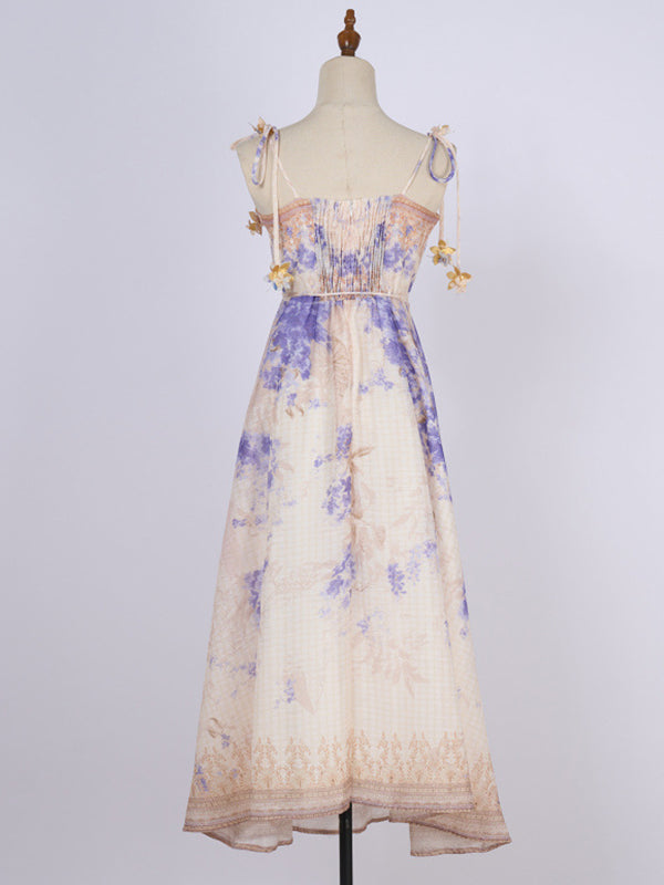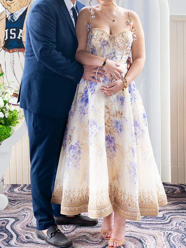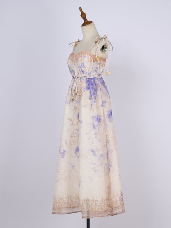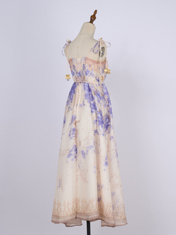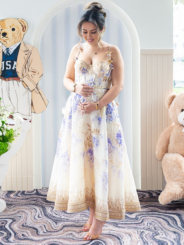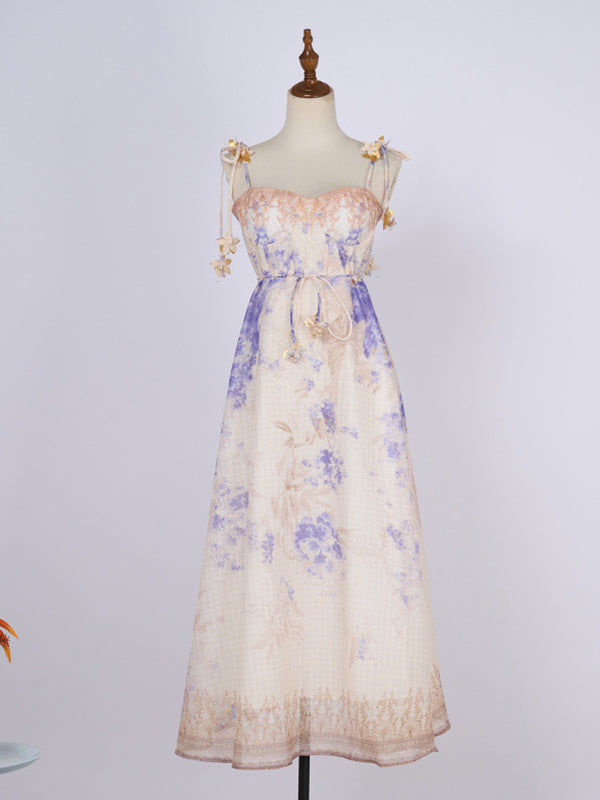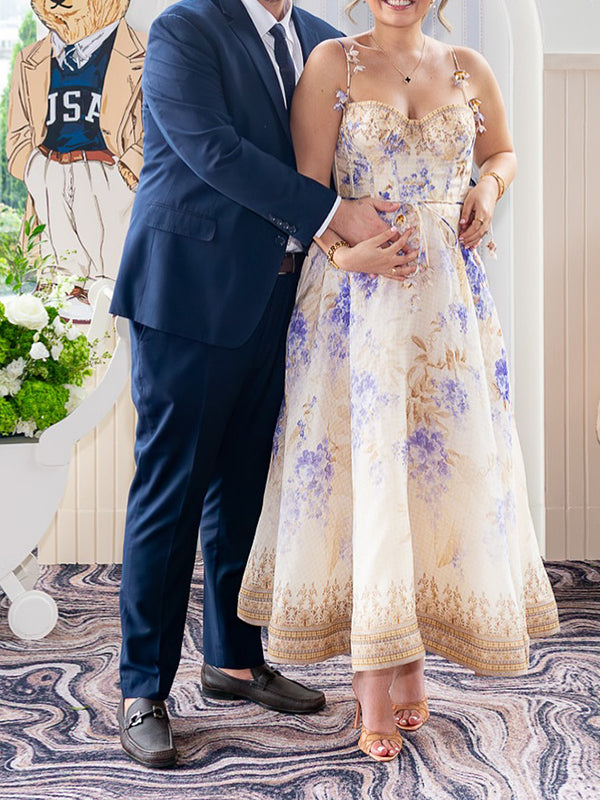fotobeyou Violet Floral Boned Bodice Belt A-line Cami Maternity Maxi Dress