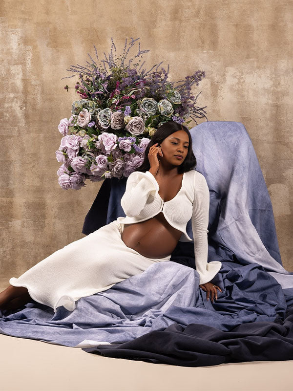 fotobeyou White 2-in-1 Ruffle Cut Out Mermaid Bodycon Elegant Photoshoot Maternity Maxi Dress