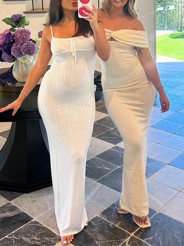fotobeyou White Crochet Cut Out Tie Back Slit Cami Bodycon Daily Cute Baby Shower Elegant Photoshoot Maternity Maxi Dress