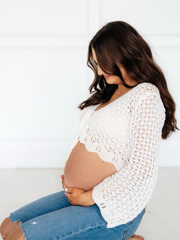 fotobeyou White Crochet Drawstring Lace Flare Sleeve Photoshoot Maternity Other Tops