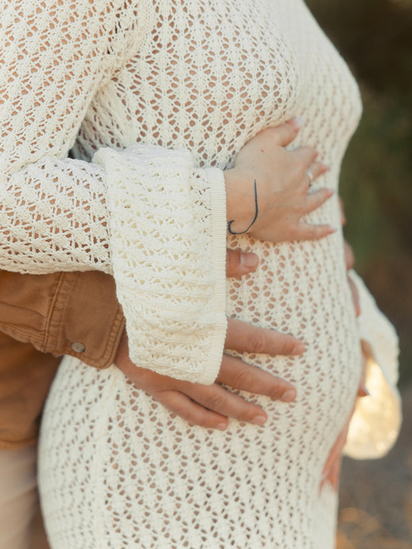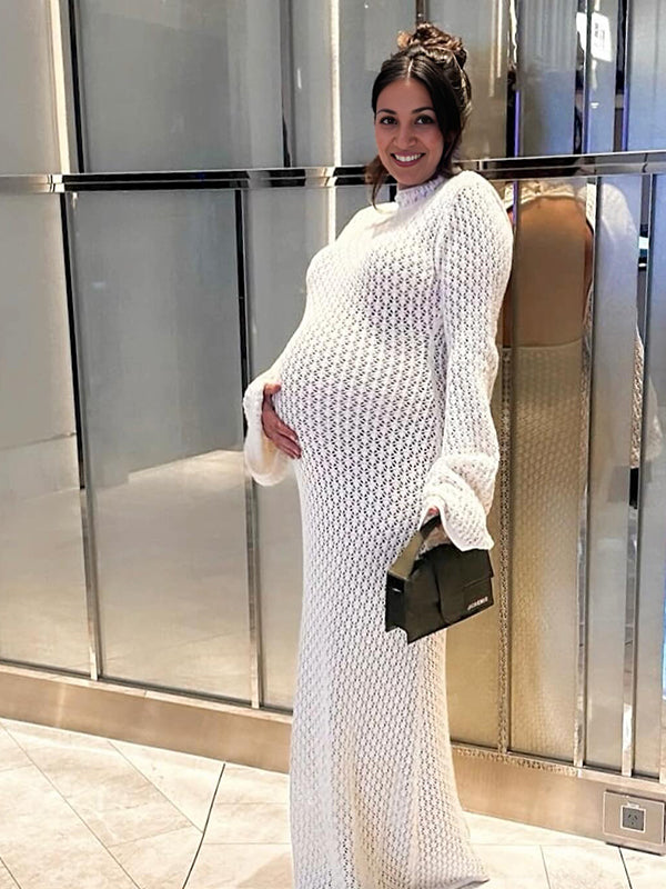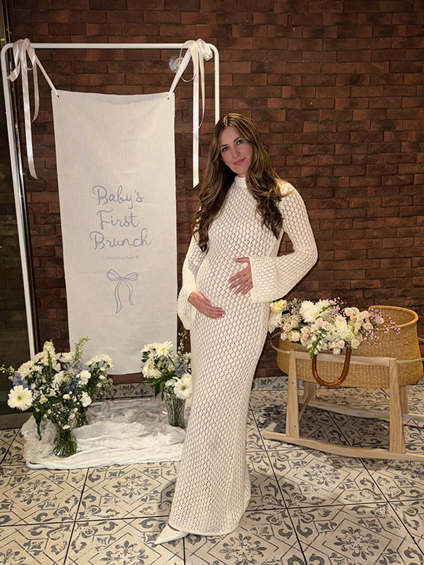 fotobeyou White Cut Out Flare Sleeve Backless Baby Shower Maternity Maxi Dress