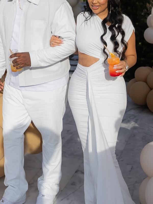 fotobeyou White Irregular Ruched Ruffle Falbala Draped Bodycon Elegant Maternity Baby Shower Maxi Dress