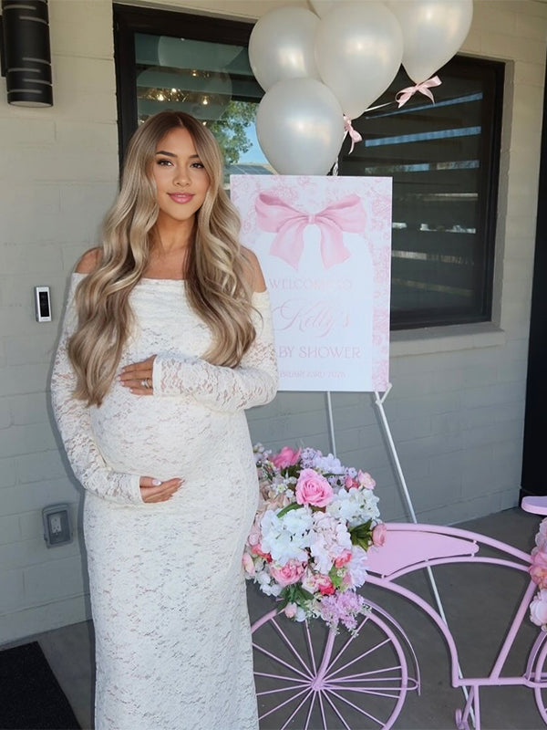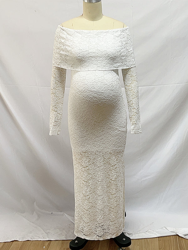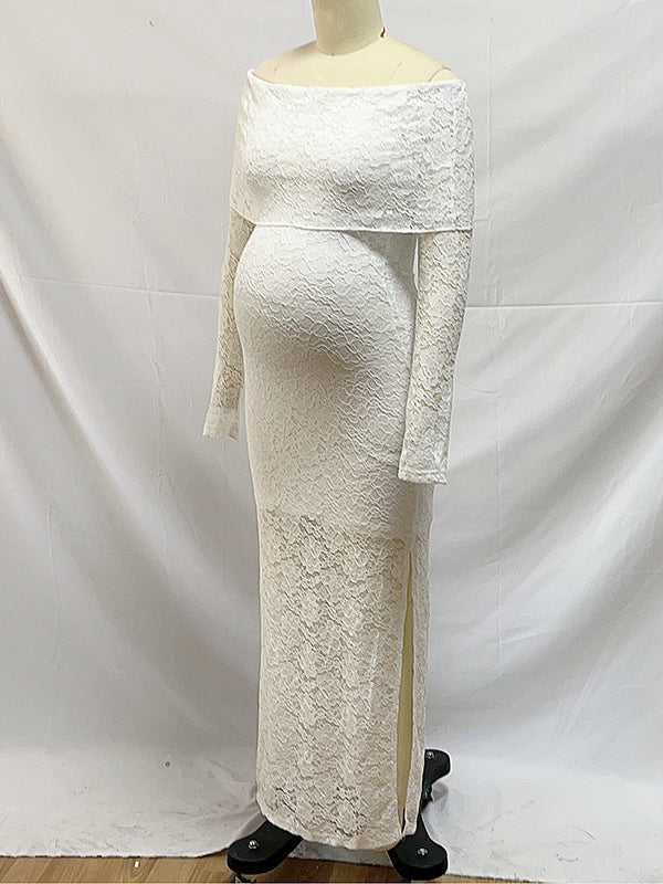 fotobeyou White Lace Off Shoulder Side Slit Bodycon Elegant Wedding Gown Maternity Baby Shower Maxi Dress