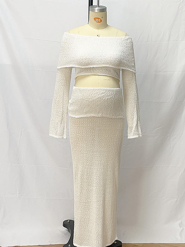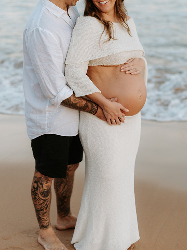 fotobeyou White Off Shoulder Backless Crop Knitwear 2-in-1 Bodycon Mermaid Going Out Photoshoot Maternity Maxi Dress