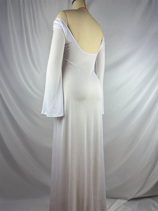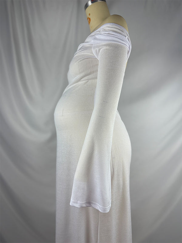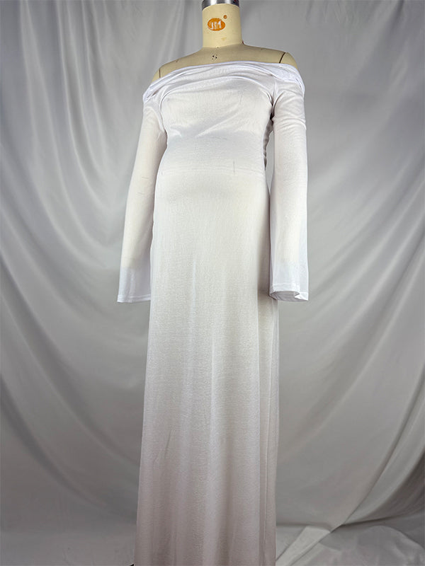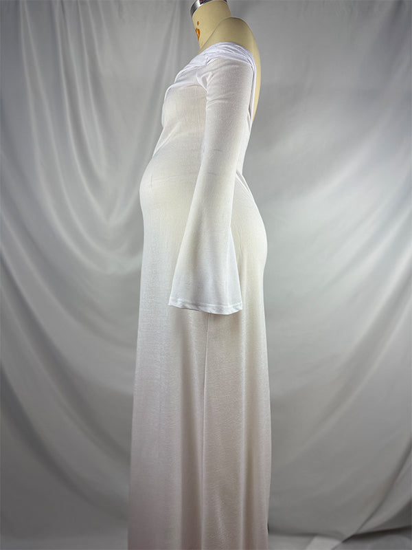 fotobeyou White Off Shoulder Backless Sheer Elegant Fashion Photoshoot Maternity Maxi Dress