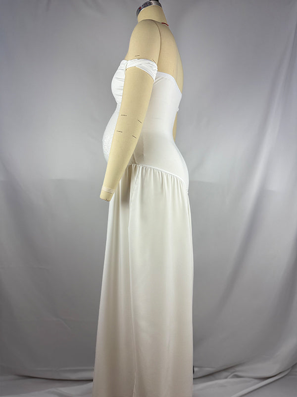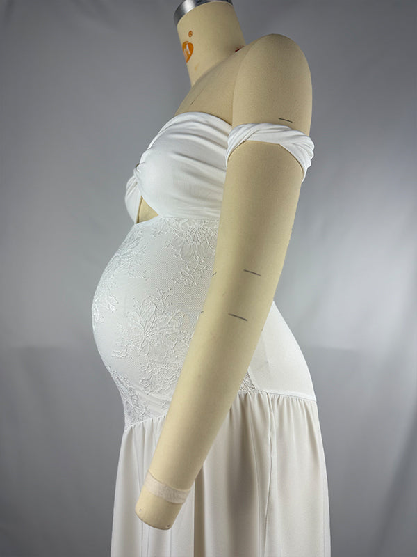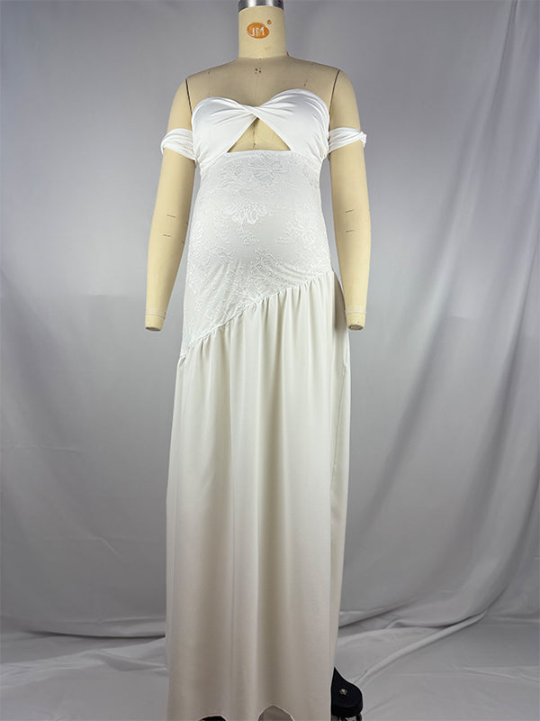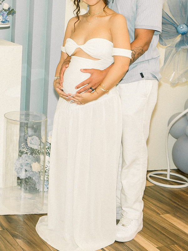 fotobeyou White Off Shoulder Cut Out Big Swing Maternity Maxi Dress