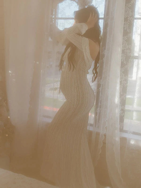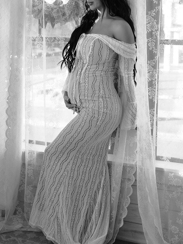 fotobeyou White Off Shoulder Lace Bandeau Tie Front Mermaid Bandage Going Out Photoshoot Maternity Maxi Dress