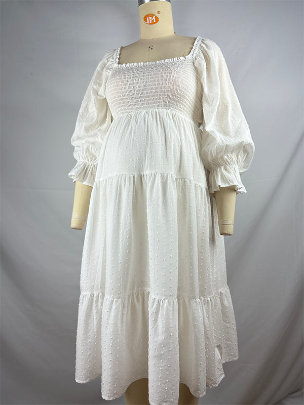 fotobeyou White Off Shoulder Ruffle Shirred Boat Neck Puff Sleeve Bow Bohemian Ivory Maternity Photoshoot Dress