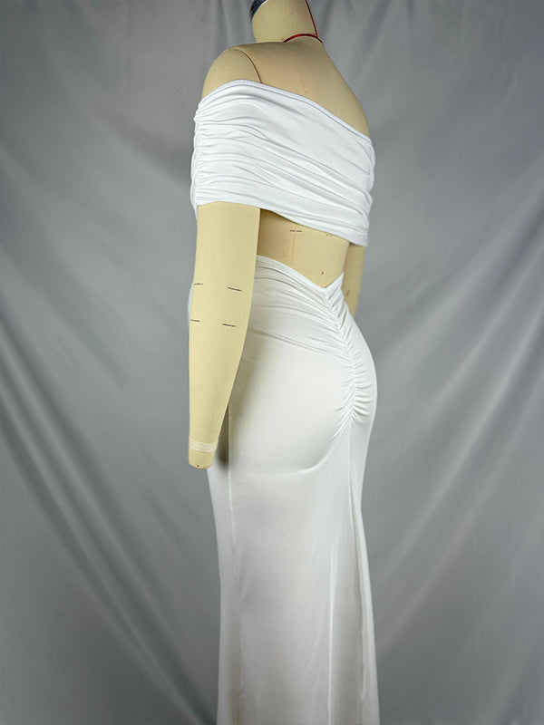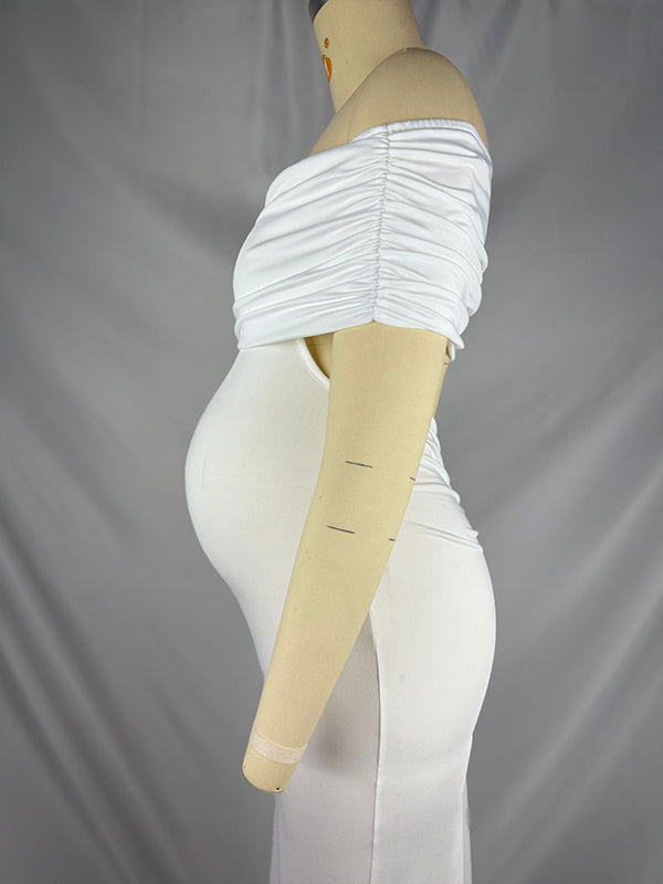 fotobeyou White Ruched Off Shoulder Backless Bodycon Elegant Maternity Gender Reveal Maxi Dress