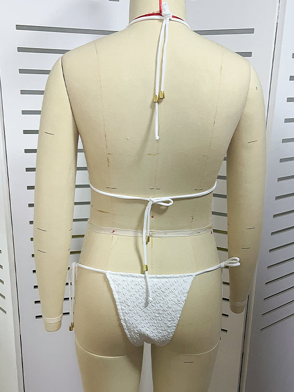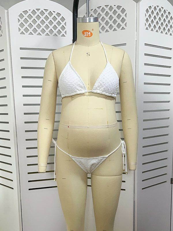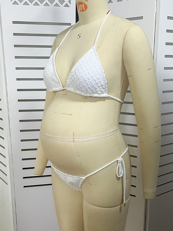 fotobeyou White Smocked Halter Neck Bikini Set Two Piece Beach Vacation Fashion Maternity Swimsuit Swimwear