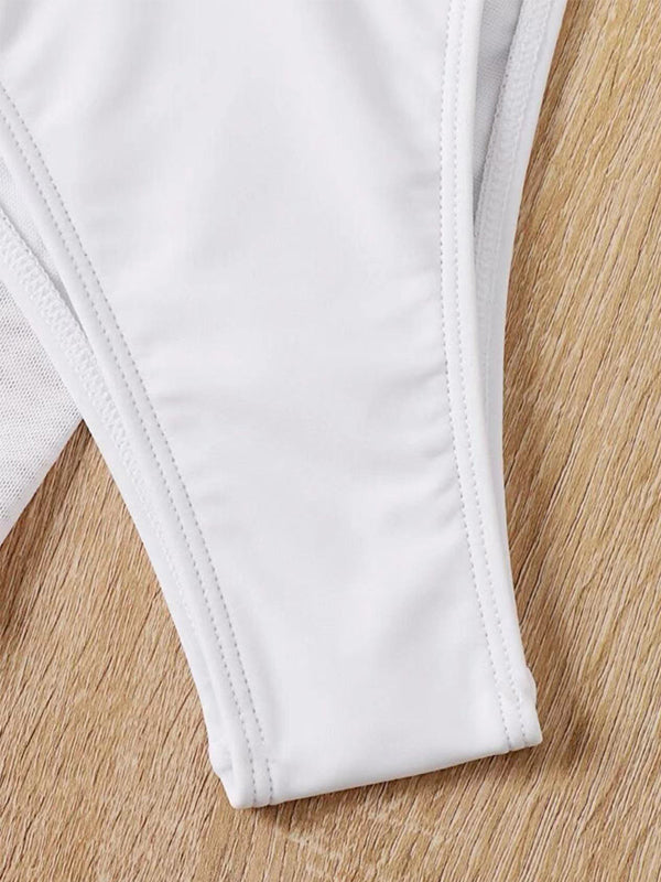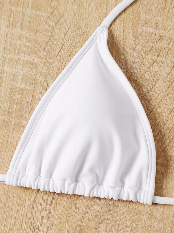 fotobeyou White Tassel Bikini Set Halter Neck Irregular Three Piece Beach Vacation Maternity Swimwear Swimsuit