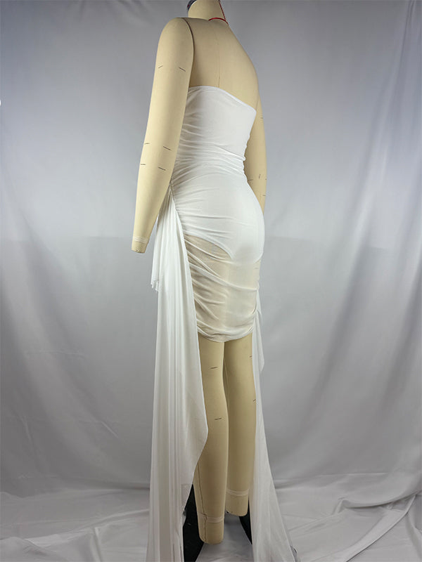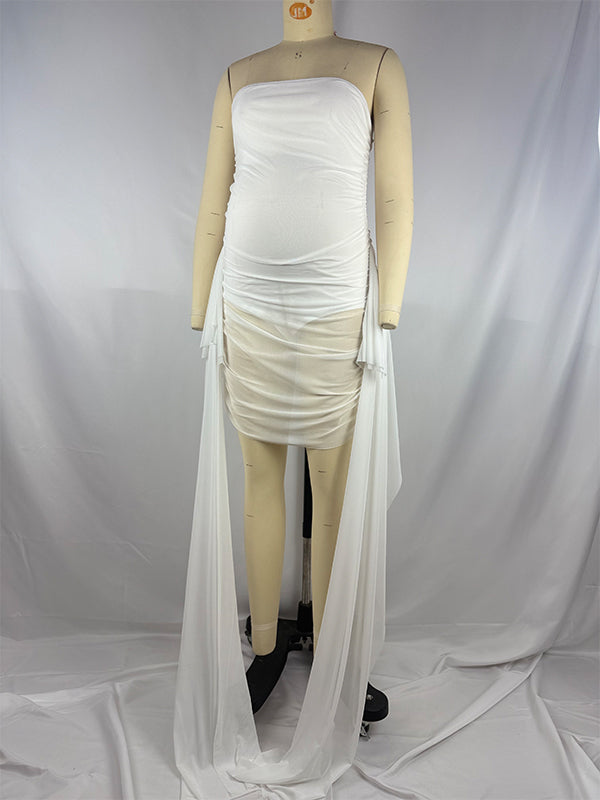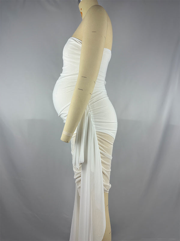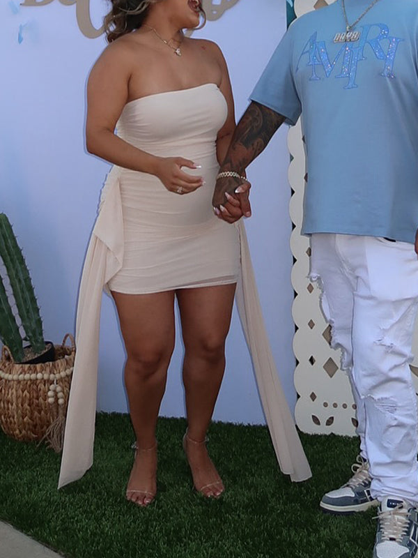 fotobeyou White Tube Sheer Grenadine Draped Baby Shower Maternity Mini Dress