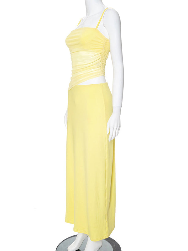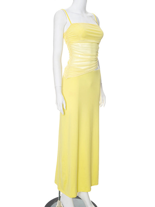 fotobeyou Yellow 2-in-1 Sheer Mermaid Bodycon Fashion Vacation Party Photoshoot Baby Shower Maternity Maxi Dress